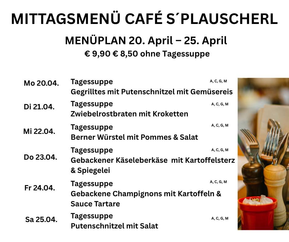 Menüplan Café s`Plauscherl